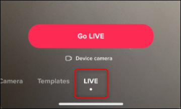 您现在将位于“相机”屏幕上。在屏幕底部,您会看到一些选项,例如相机、模板和实时。如果您在此处没有看到 LIVE,那么您目前不符合上线的要求。