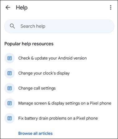 这会将您带到一般的 Pixel 帮助网站。您可以浏览热门帮助资源的各个部分或搜索特定问题。
