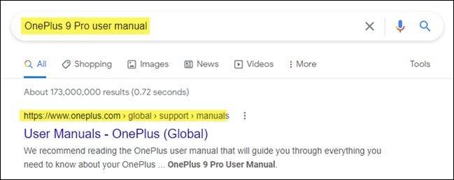 接下来,寻找手机制造商的官方网站。在这种情况下,oneplus.com 是最好的结果,所以你应该去那里。如果您找不到制造商的网站,移动运营商也是不错的来源。