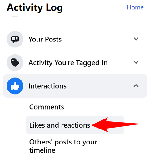 在“活动日志”中,点击互动 > 喜欢和反应。