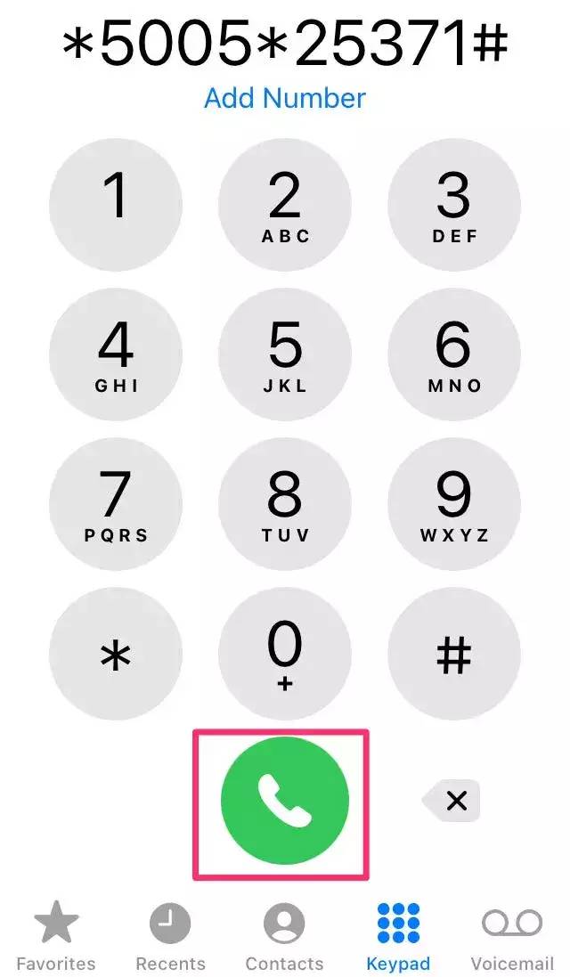 - 要打开它,请输入*5005*25371#并点击绿色的通话图标。