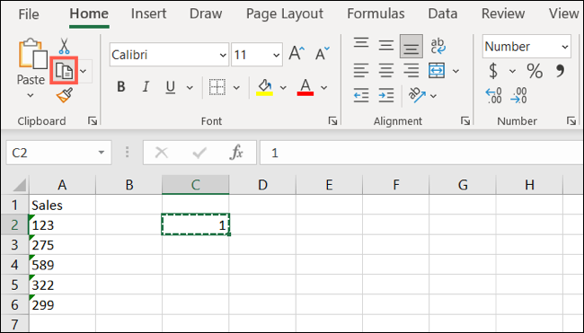 通过右键单击并选择“复制”或单击“主页”选项卡的“剪贴板”部分中的“复制”按钮来复制单元格。