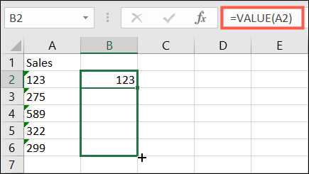 该VALUE函数为您提供了另一种在 Excel 中将文本转换为数字的方法。使用此选项,您将使用右侧的一列来转换文本。
