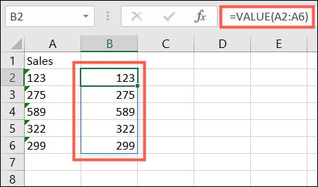 =值(A2:A6)