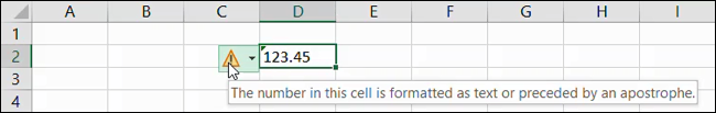 如果您输入数据并在左下角看到警告符号,这是一种快速转换文本的方法。当您将光标悬停在警告上时,您将看到如下屏幕截图中的说明。