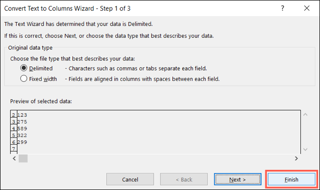根据您的号码作为文本输入的方式,以下一种方法可能更适合您。例如,您可能有许多不相邻的单元格,转换单元格格式会很乏味。或者您可能看不到警告符号以使用该方法。
