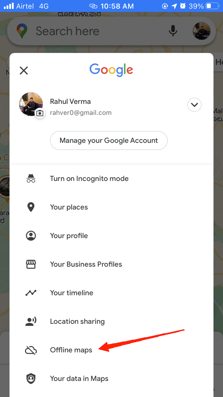 下载地图后,您可以从谷歌地图轻松访问它。为了打开下载的地图,您需要按照下面提到的以下几个步骤进行操作。