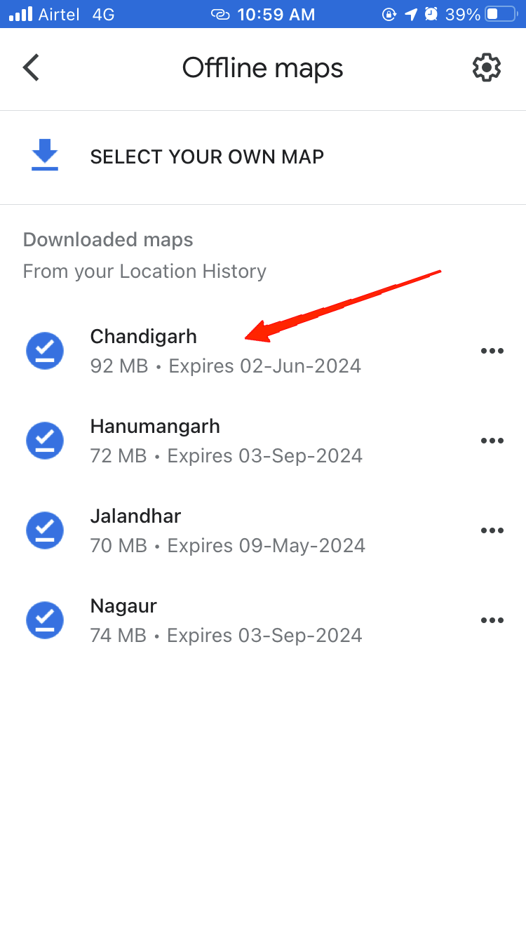 - 单击您的个人资料图标,然后选择离线地图。它将在列表中显示所有下载的地图。