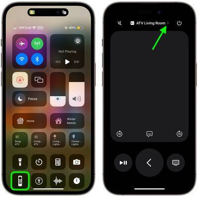 - 轻点 Apple TV 遥控器按钮(如果没有,您可以手动将其添加到“控制中心”)。