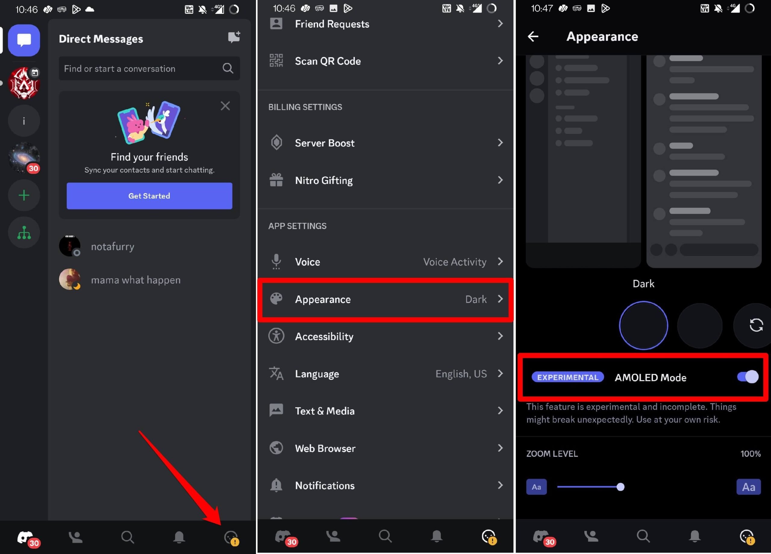 首先,让我向您展示如何在不和谐应用程序上启用 AMOLED 模式。