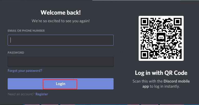 步骤2:您需要在弹出窗口中键入相应的信息,然后单击Login(登录)。这样,您将登录Discord。