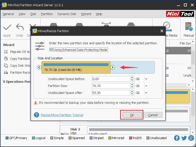 完成所有步骤后,您将成功扩展分区。在这里,您需要注意的一件重要事情。就是说,如果要扩展与系统相关的分区,则需要在MiniTool Recovery Environment中执行此操作。