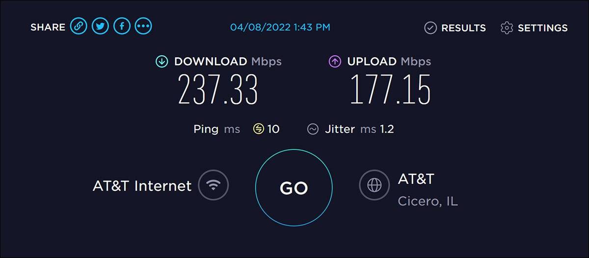 假设您有千兆光纤或有线互联网连接。以下是使用您的手机进行的速度测试可能看起来的样子。