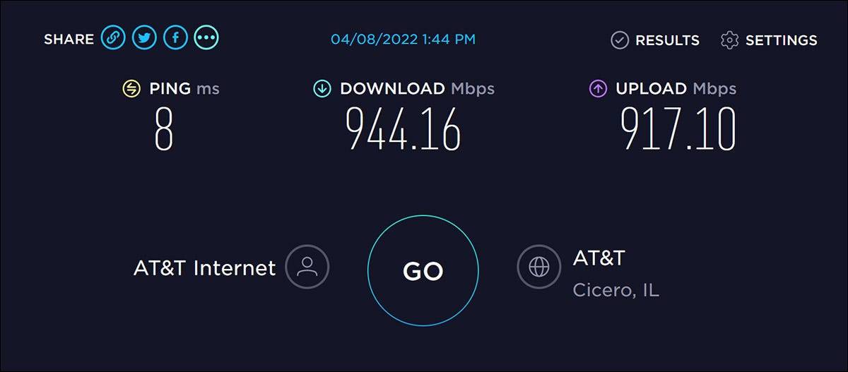 此处的速度测试结果约为 945 Mbps,更能反映您对千兆光纤连接的期望速度。考虑到我们没有将每个人都踢出 LAN 来进行此测试或完全孤立地运行它,我们并不担心它不是完美的 1000/1000。考虑到一般开销和活动,这已经足够准确了。