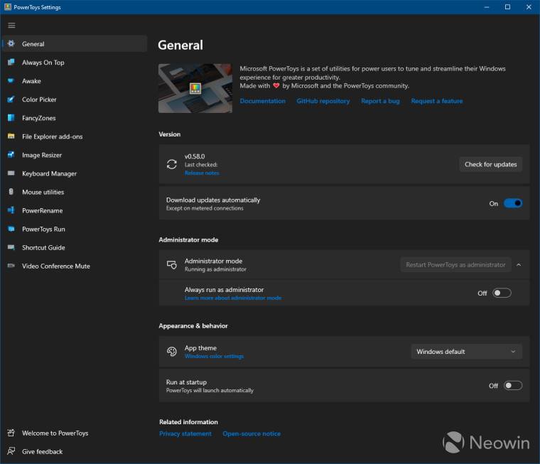 如果您在 Windows 11 中使用 PowerToys,您可以在Microsoft Store中获取它. 对于 Windows 10 中的其他用户,您可以打开该应用程序并单击“常规”选项卡上更新部分下的“检查更新”。那些想第一次尝试 PowerToys 的人可以从应用程序的 GitHub 页面获取 0.58.0 版本的安装程序。