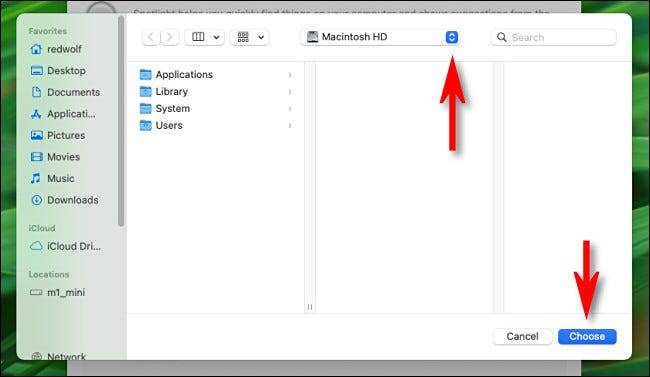 在出现的窗口中,从窗口顶部附近的下拉菜单中选择“ Macintosh HD”。这将包括主硬盘驱动器上的所有文件。当它要求确认时,单击“确定”。