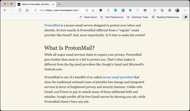 Microsoft Edge具有漂亮的内置 阅读器模式。它从网页上删除所有内容(包括广告和额外的内容),并以可自定义的文本格式显示。