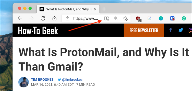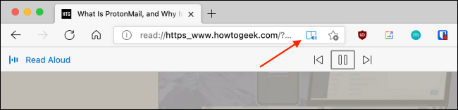 要到达那里,首先,打开您希望Microsoft Edge在Windows 10 PC或Mac上大声朗读的文章。然后,从URL栏中单击“沉浸式阅读器”按钮(也可以按F9键。)。