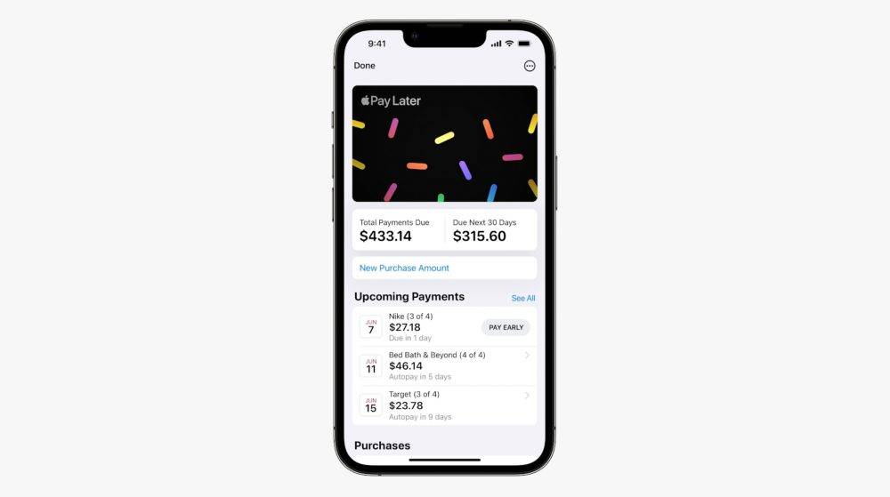 Apple Pay Later 现已正式发布。Apple Pay Later 是一项新的融资功能,允许客户将在商店或在线购买的任何 Apple Pay 分成六周付款,不计利息。付款是通过电子钱包应用程序管理的。