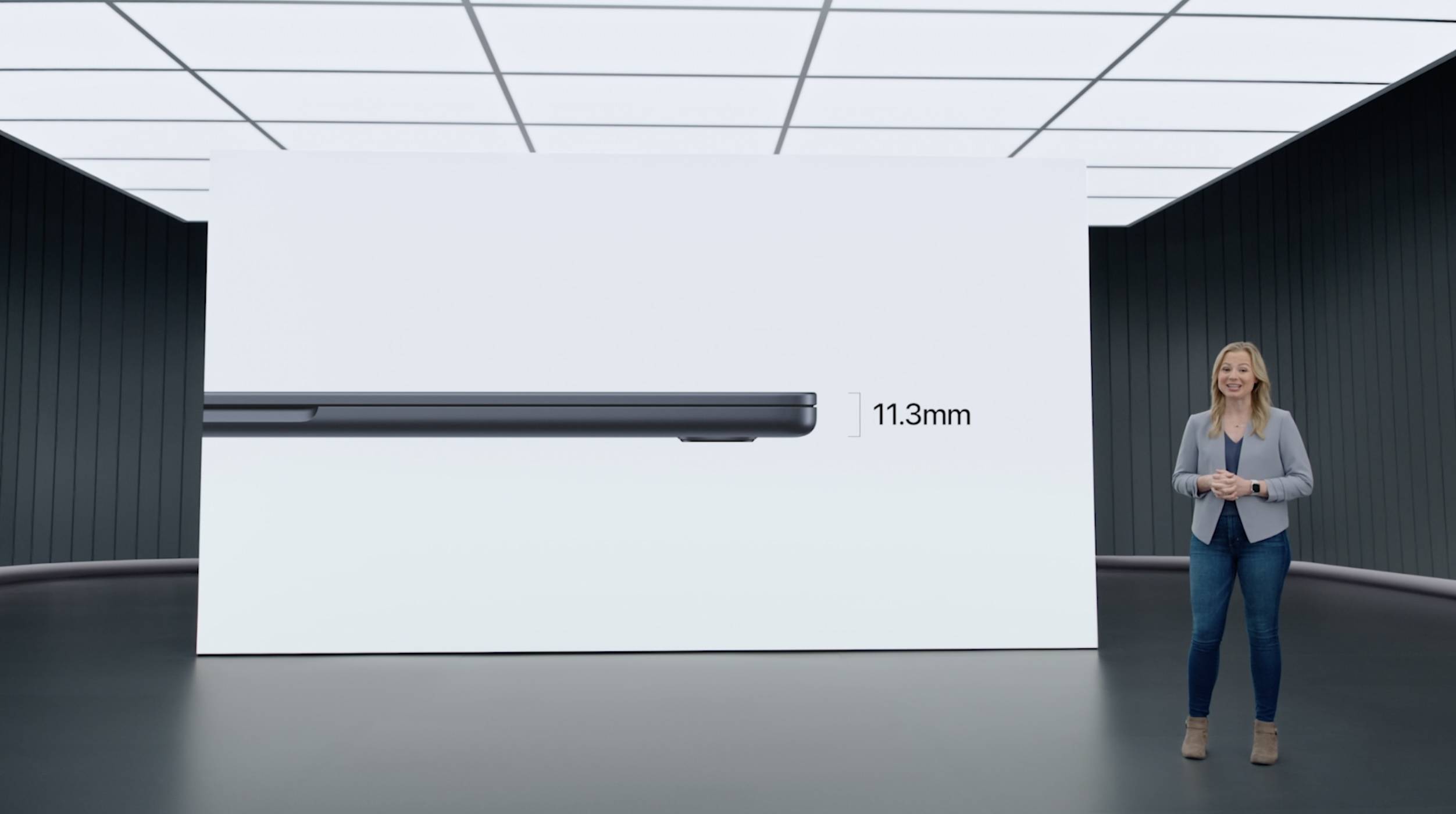 值得注意的是,新款 MacBook Air 已经从多年来的楔形设计转变为像 MacBook Pro 一样的平边机箱。但 Apple 让它非常纤薄,只有 11.3 毫米(1.13 厘米)薄。
