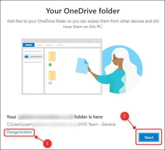 默认情况下,您的文件将在中同步Users\[username]\[organization name]\[Team - Channel]。如果要更改它们的存储位置,请单击“更改位置”,然后选择“下一步”。