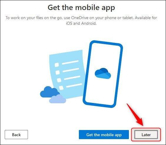 关于共享以及文件位置的信息共有三页,因此请单击“下一步”进行浏览。在“获取移动应用程序”页面上,选择“稍后”。