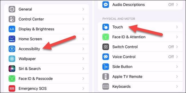 接下来,转到“辅助功能”设置并选择“触摸”。