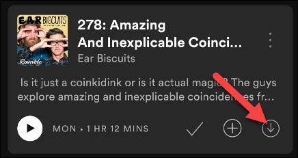 只需选择任何情节上的向下箭头按钮即可下载它以供离线收听。您无法在桌面应用上执行此操作。