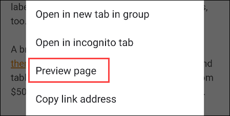 菜单包括在隐身模式下打开,复制链接等选项。我们想要的是“预览页面”。