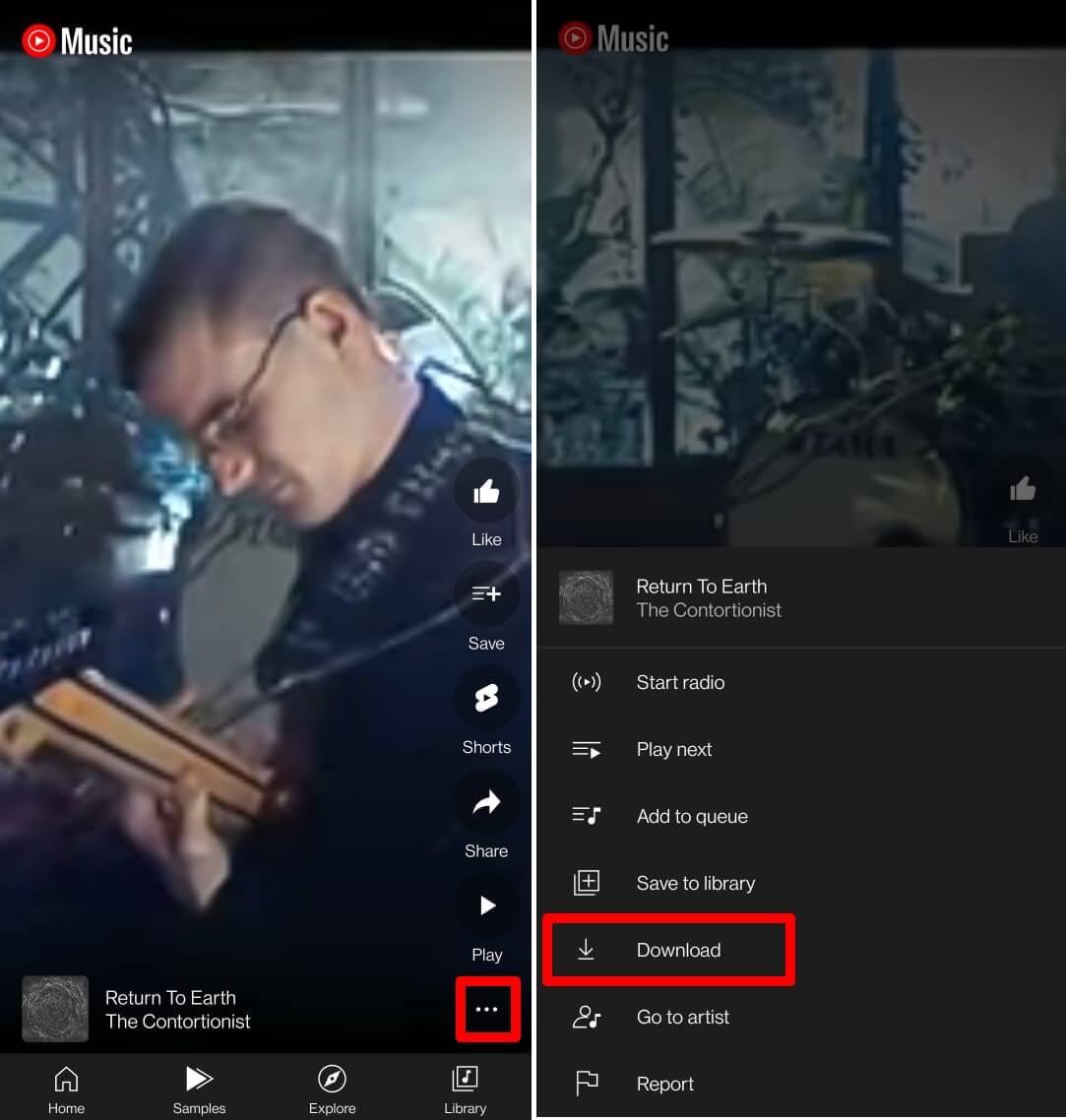 在同一菜单中,您可以点击“转到艺术家”以访问艺术家个人资料。如果您发现 YouTube Music 样本令人反感,请从菜单中点按举报。
