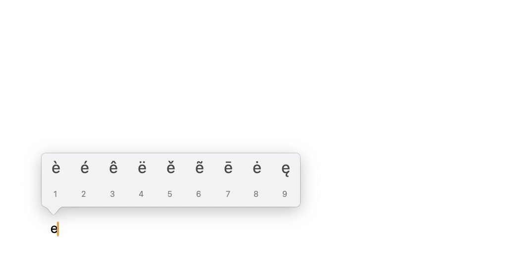 - 按住与所需字符相对应的键。例如,要键入带有急性的“e”,请按住“e”键。