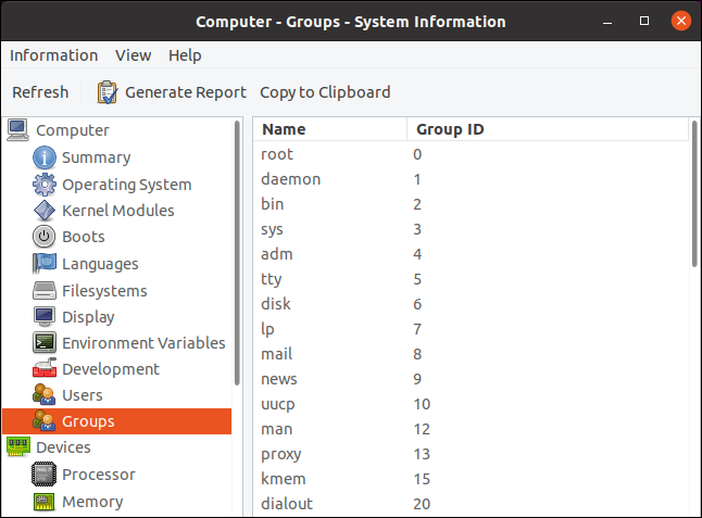 尽管HardIfno主要致力于硬件,但它确实显示了一些不是基于硬件的系统属性。例如,它可以显示有关用户和组的信息。