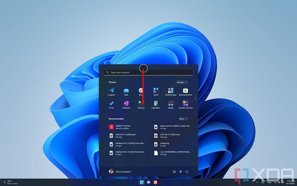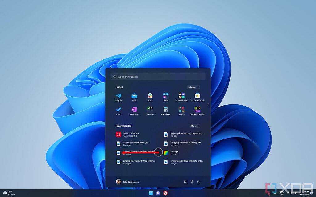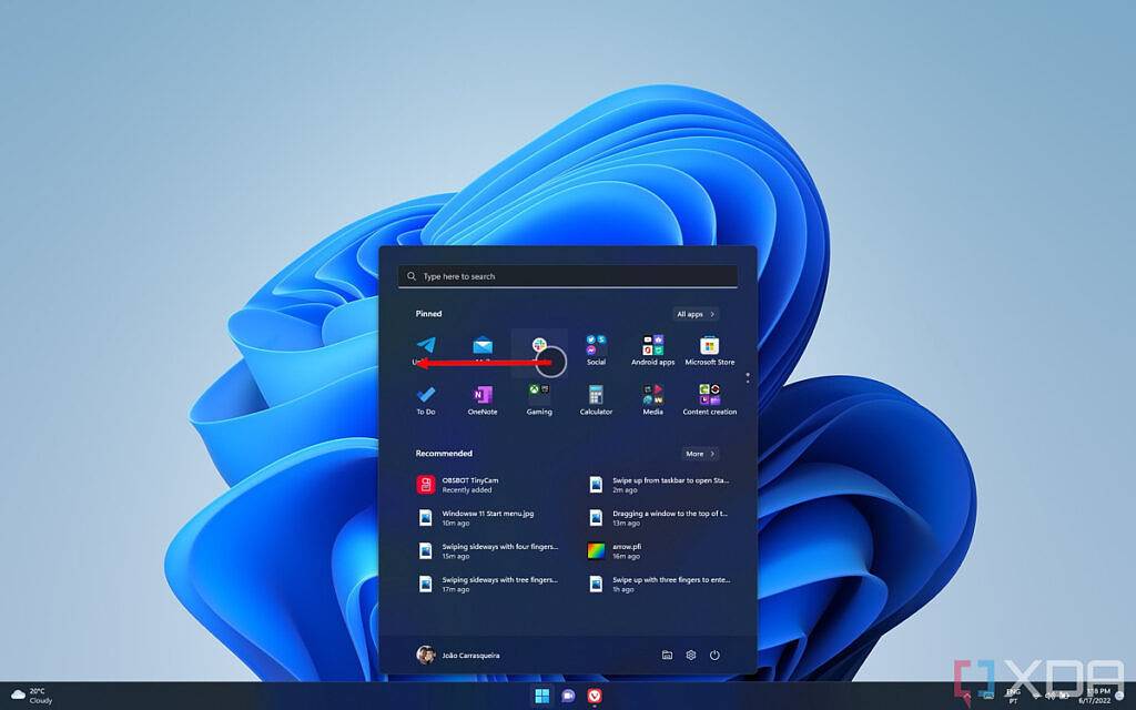 如何使用带有触摸手势的 Windows 11 开始菜单