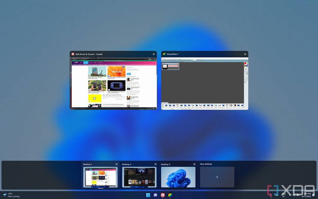 与切换应用程序的三指手势不同,这个不是循环使用的。它使用您为虚拟桌面创建的顺序,您可以通过重复手势切换到其中的任何一个。当您第一次开始刷卡时,您可以立即看到当前虚拟桌面旁边的虚拟桌面,然后选择您想要的。此手势在原始 Windows 11 版本中也可用。