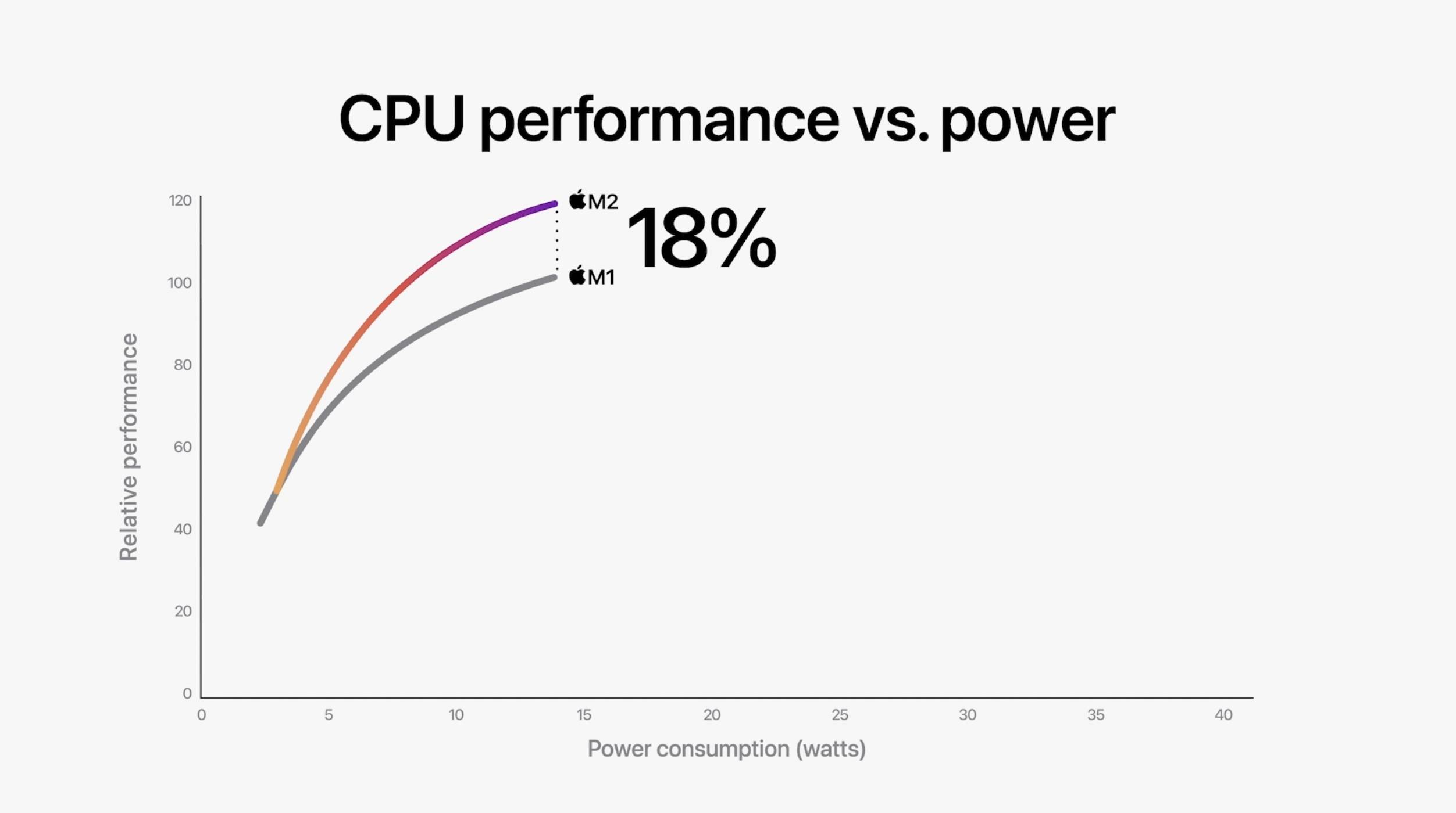 苹果表示,与 M1 相比,M2 的 CPU 性能提高了 18%,GPU 性能提高了 35%。它拥有超过 200 亿个晶体管,每秒可处理高达 15.8 万亿次操作。