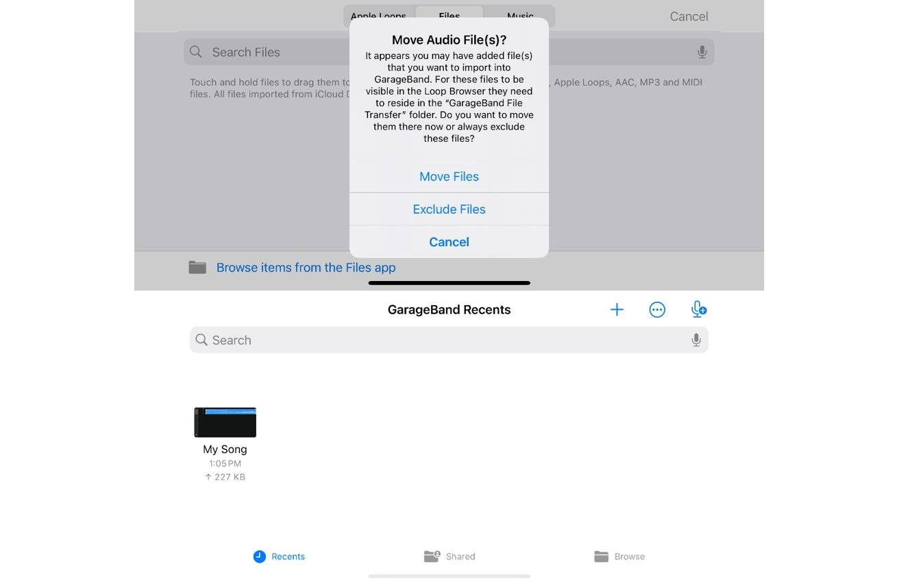 - 接下来,“循环浏览器”图标将从“文件”应用程序导入音频文件。