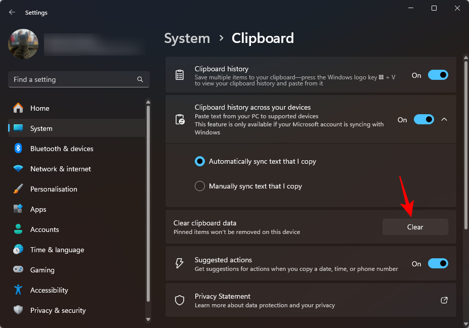 您还可以从 Windows 设置中清除剪贴板历史记录。请按照以下步骤操作: