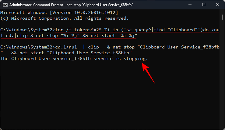 此命令将停止,然后重新启动剪贴板,从而有效地清除历史记录。