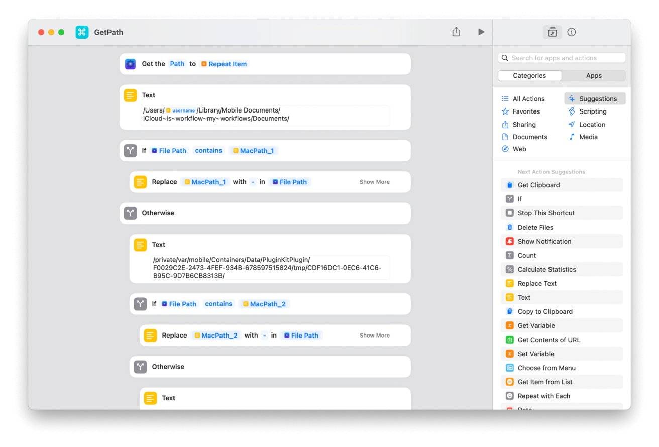 还有一个快捷方式可以完成获取文件路径的相同任务。它使用一个名为 Actions 的免费应用程序,可用于自动化,例如列出需要备份的文件或文件夹。