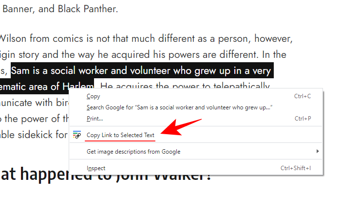 - 作为扩展,当您突出显示文本并右键单击它时,您将看到具有此功能的“复制所选文本的链接”选项。