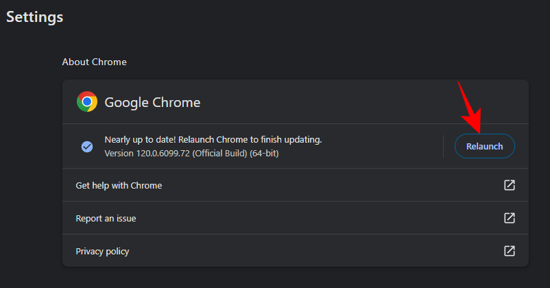 - 如果您看到任何更新,请获取这些更新并重新启动 Chrome。