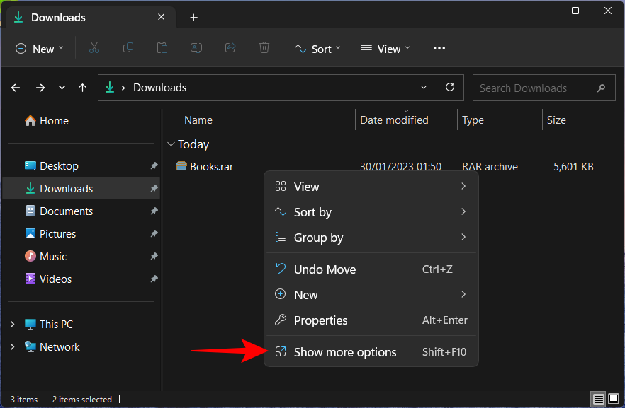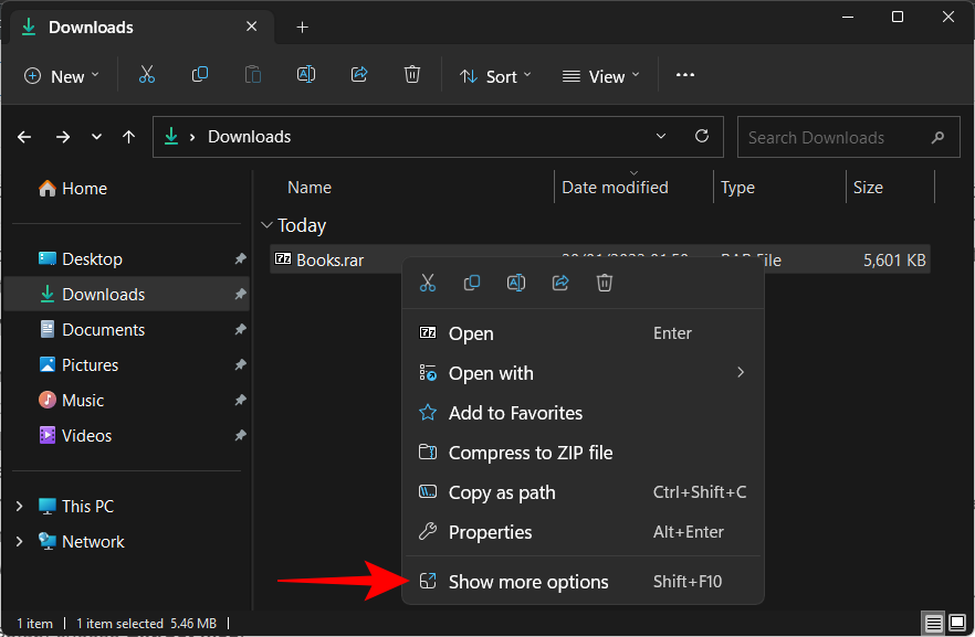 - 下载后,运行安装程序并按照屏幕上的说明安装 7-Zip。现在,右键单击您的存档文件,然后选择显示更多选项。
