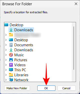 - 如果您选择了基本的“解压缩”选项,系统将要求您选择目的地。移动到要提取文件的文件夹。然后单击“解压缩”以开始提取过程。