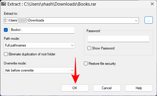 - 您还可以配置是否要为提取的文件设置单独的文件夹,如果是受密码保护的文件,则输入密码等。或者直接单击“确定”进行提取。