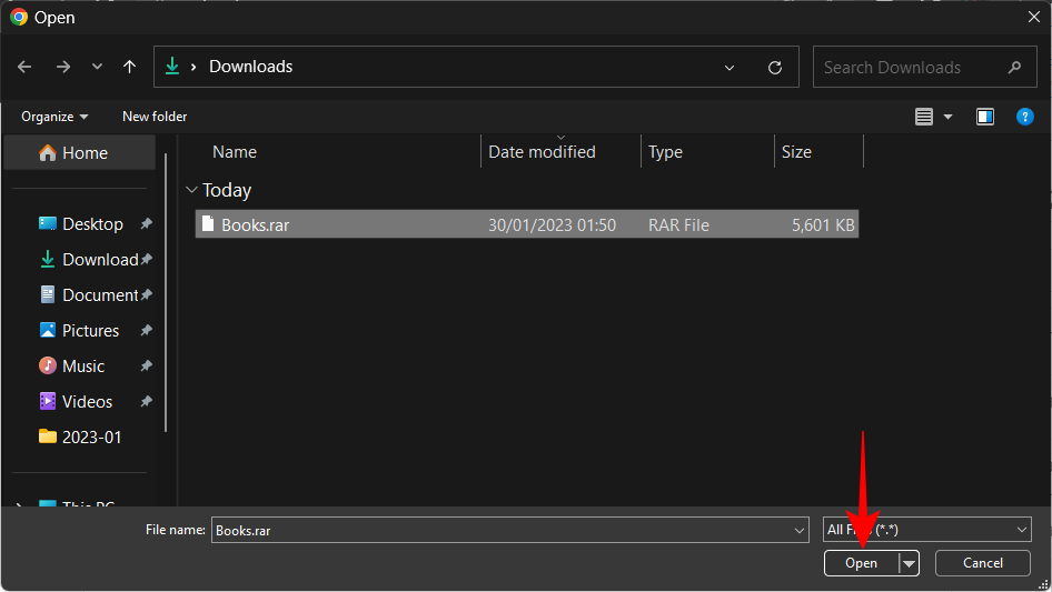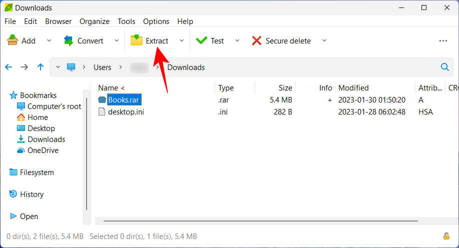 - 导航到存档文件所在的位置。然后选择它并单击顶部的提取。