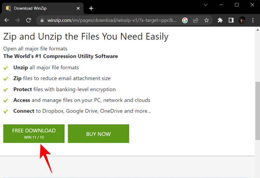 - 按照上面的链接,然后单击 免费下载 并使用下载的安装文件安装 WinZip。