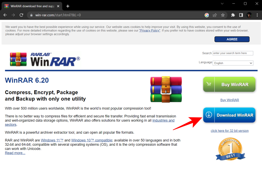 - 在上面给出的下载页面上单击下载 WinRAR 并安装该应用程序。