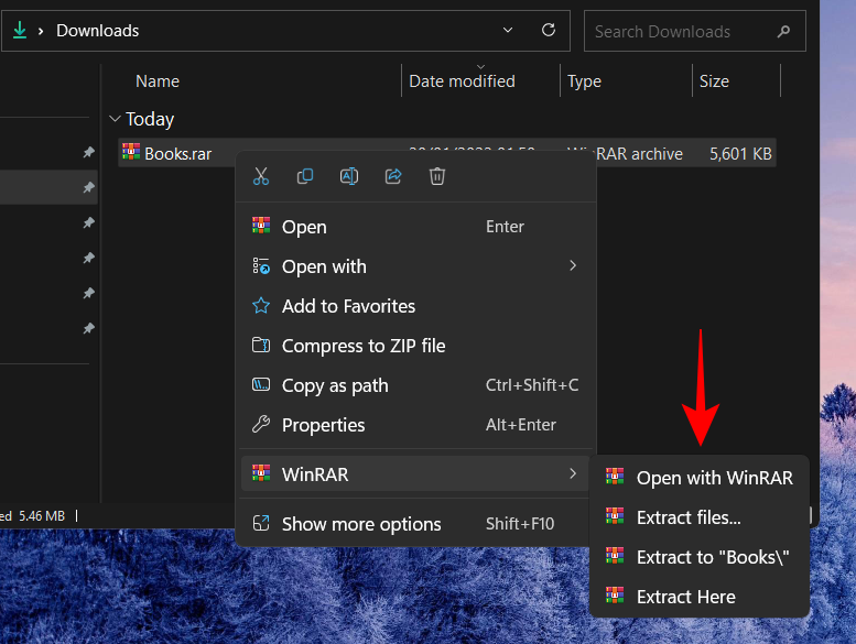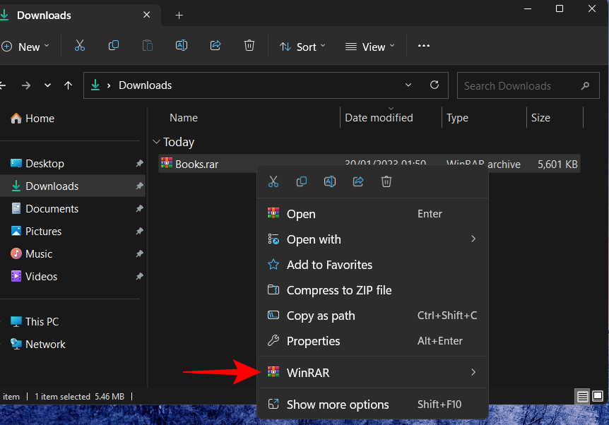 - 然后右键单击您的存档文件,您将从新的上下文菜单本身中找到 WinRAR 选项,类似于 WinZip。