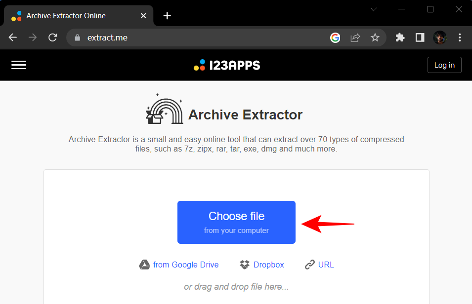 是的,您确实可以在线提取文件,然后下载其提取的内容以将其保存在您的 PC 上。出于演示目的,我们使用 extract.me。