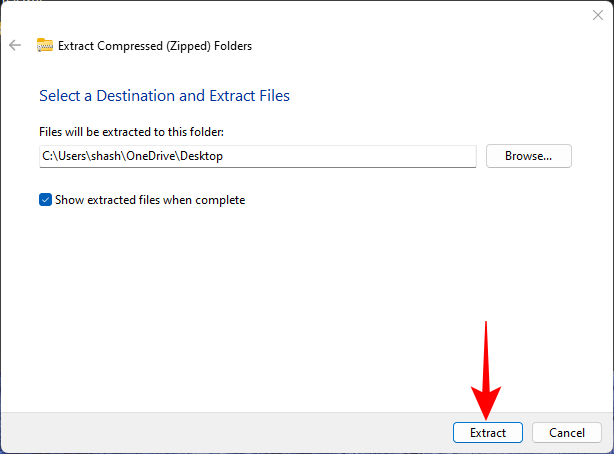 - 然后按 Enter。您的文件将被提取到与压缩文件相同的文件夹中。